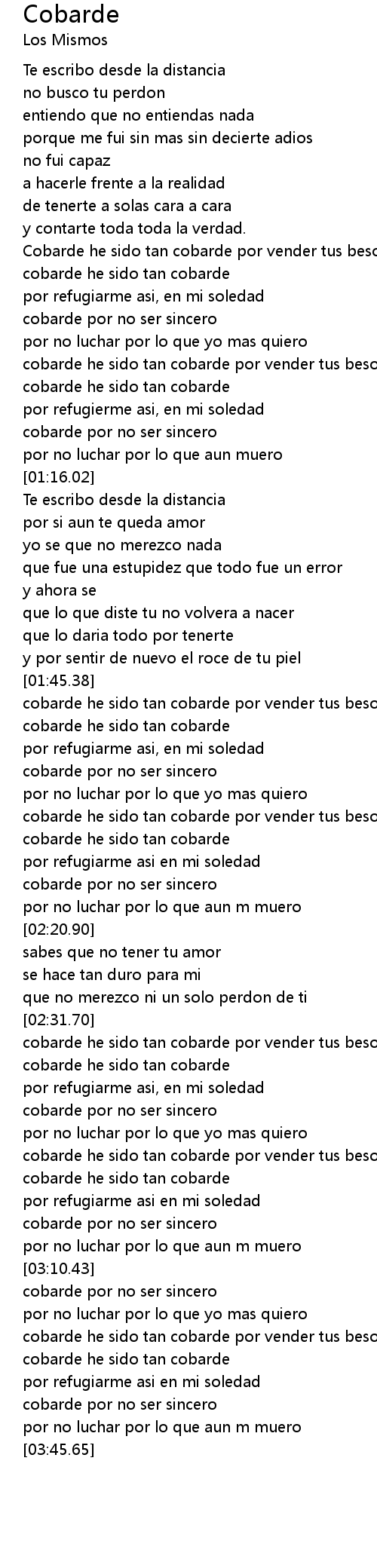 [01:45.67] cobarde he sido tan cobarde por vender tus besos