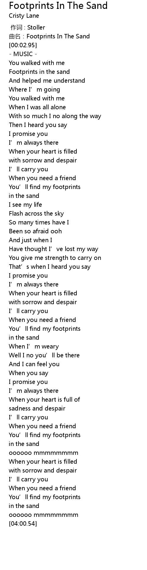 | [00:18.00] | Footprints in the sand |