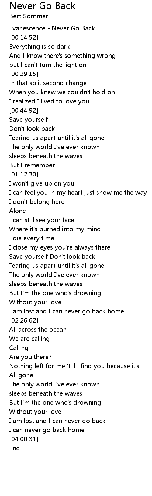 Never Go Back 歌词