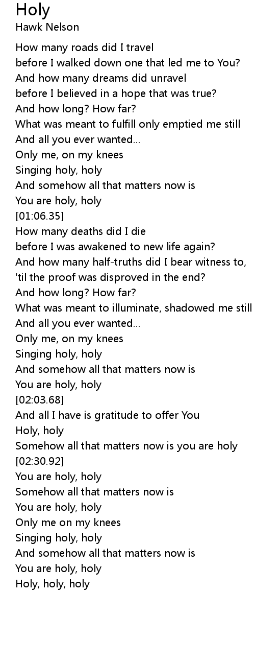 Somehow all that matters now is you are holy |