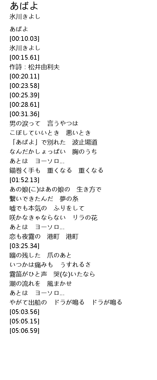 | [00:00.93] | あばよ |