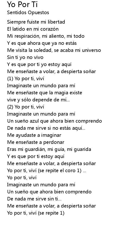 | Yo por ti, vivi se repite el coro 1 ... | |