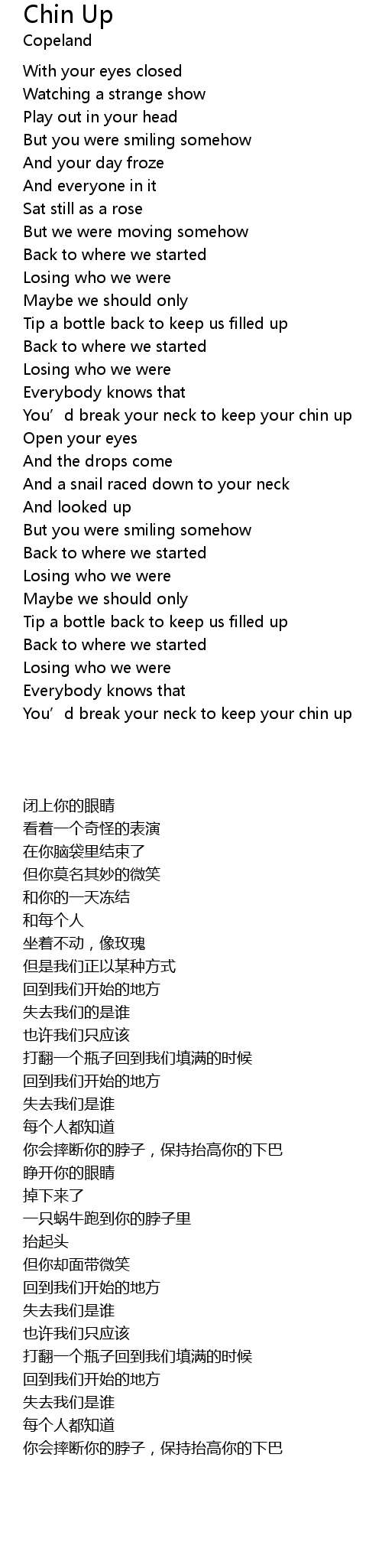 | [00:52.190] | 你会摔断你的脖子,保持抬高你的下巴 |