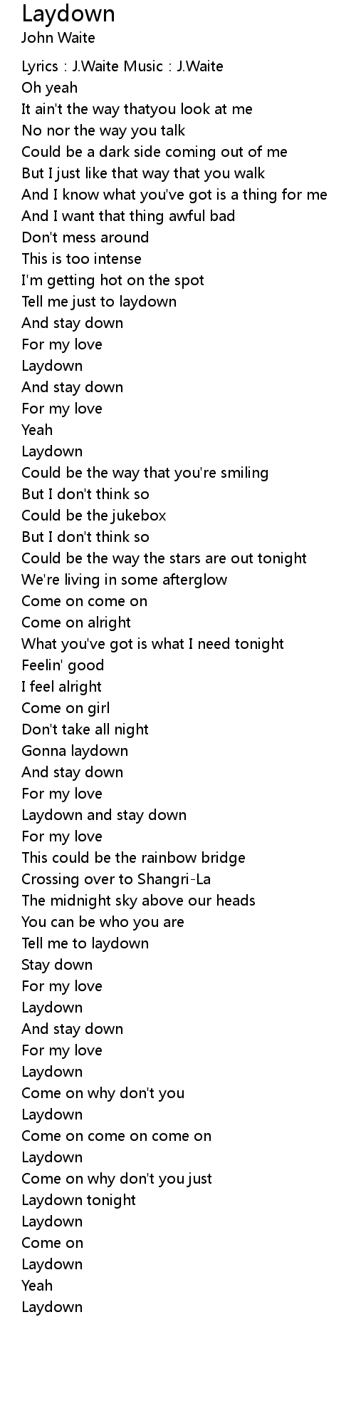 | Tell me just to laydown | |