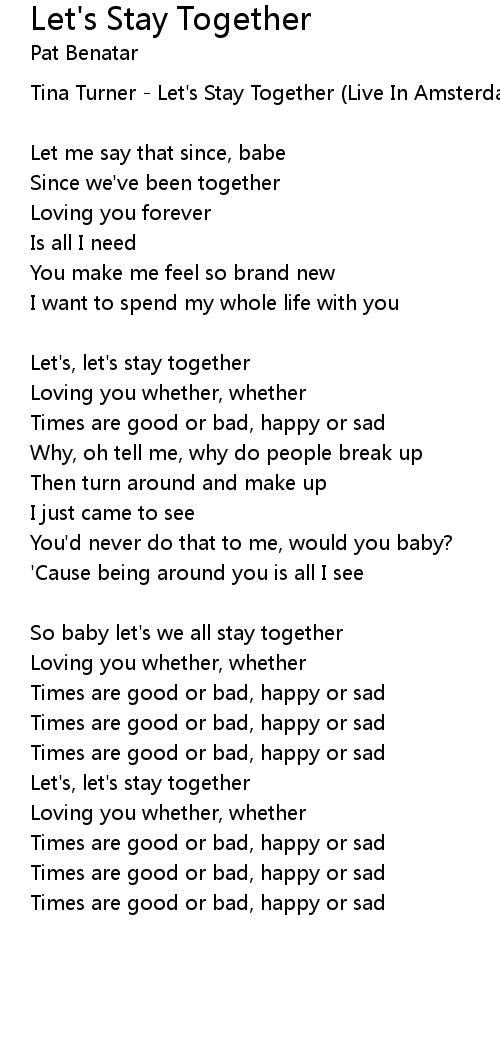 Let's, let's stay together |