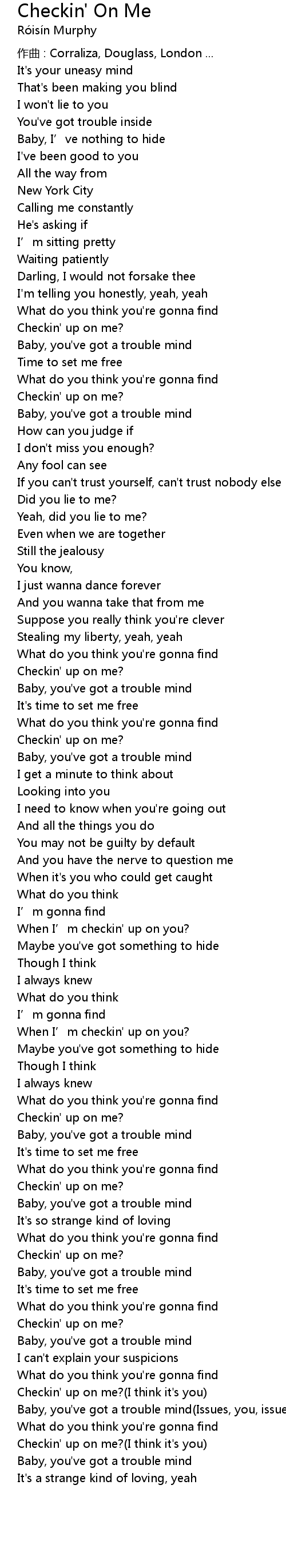 | Baby, you' ve got a trouble mind Issues, you, issues Think it' s you | |