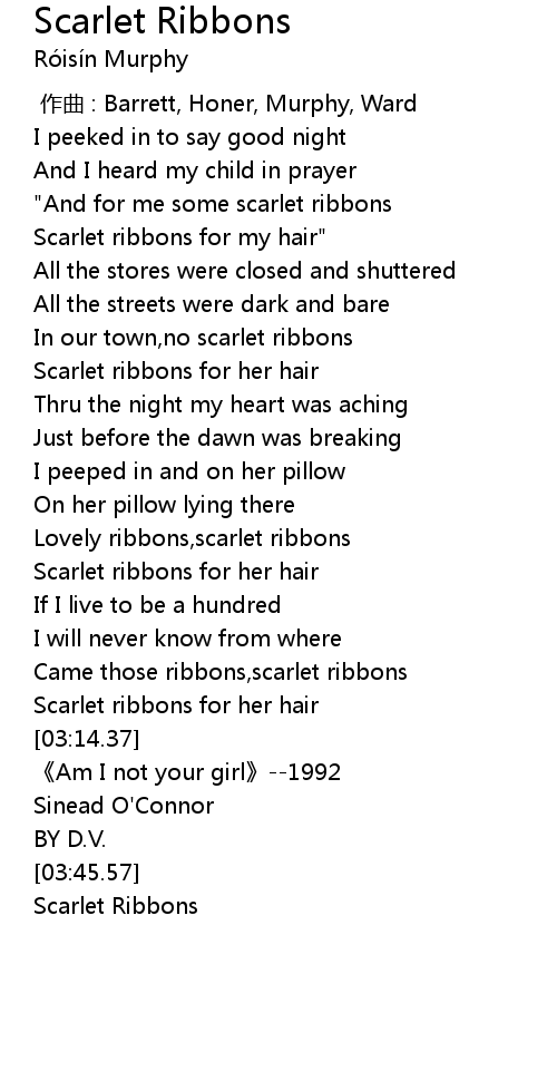| [02:03.52] | Lovely ribbons,scarlet ribbons |
