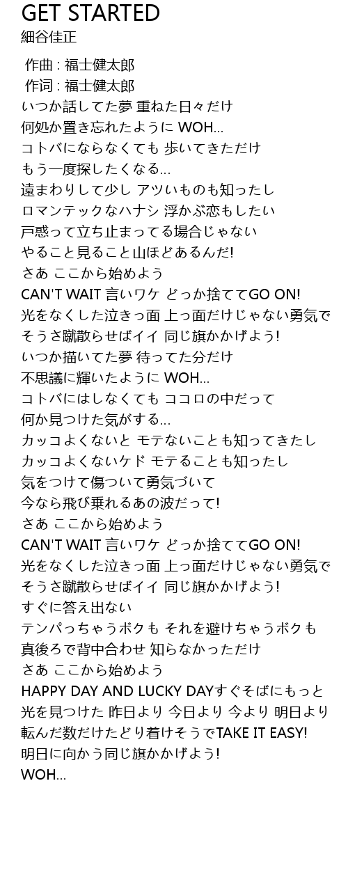 | [01:08.27] | CAN'T WAIT 言いワケ どっか捨ててGO ON! |