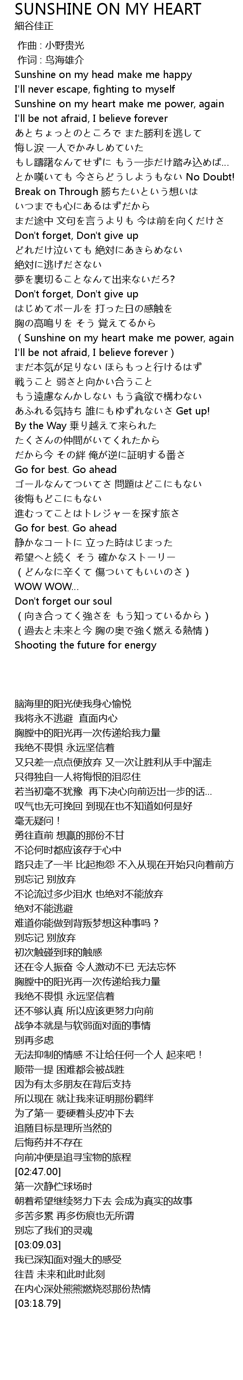 | [00:09.92] | Sunshine on my heart make me power, again |