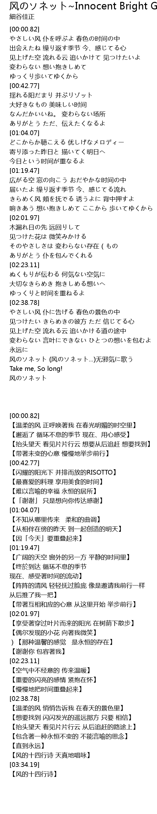 | [03:25.28] | 风のソネット (风のソネット...)无邪気に歌う |
