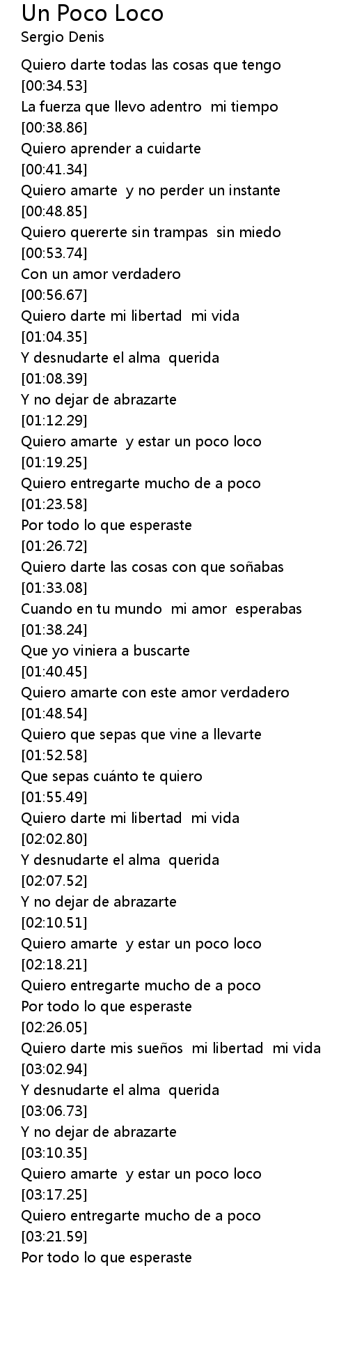 | [03:12.35] | Quiero amarte y estar un poco loco |