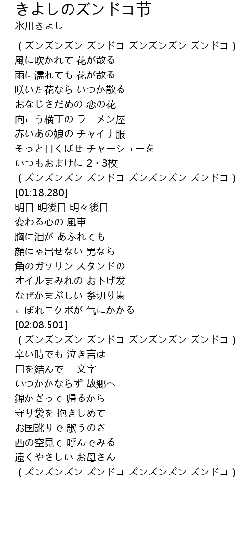 | [01:09.261] | (ズンズンズン ズンドコ ズンズンズン ズンドコ) |