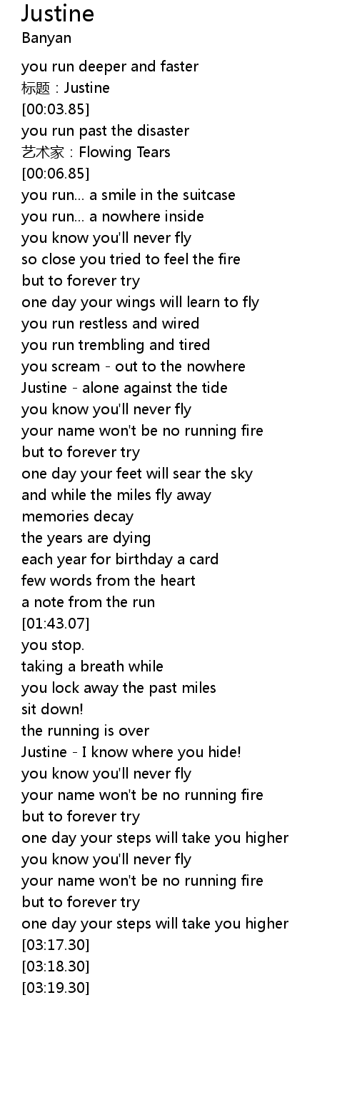 | [00:54.67] | Justine alone against the tide |