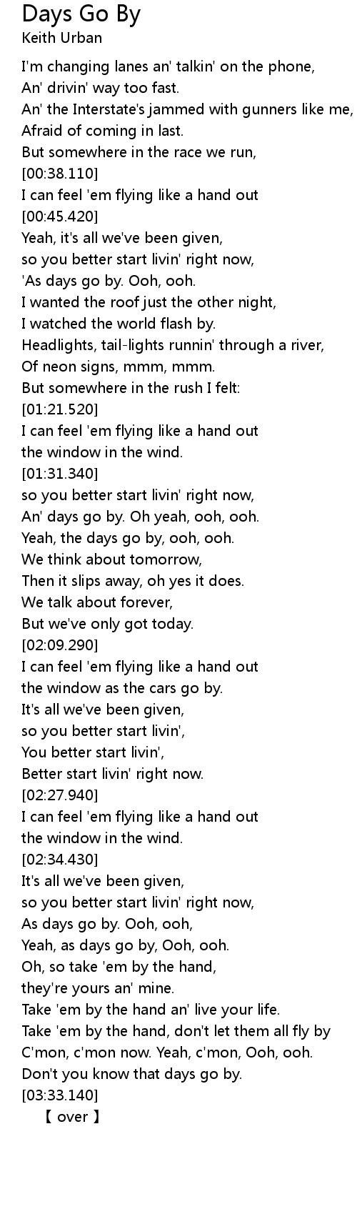 | [01:45.400] | Yeah, the days go by, ooh, ooh. |