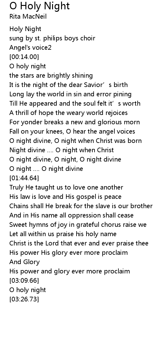 | [01:19.82] | Night divine . O night when Christ |