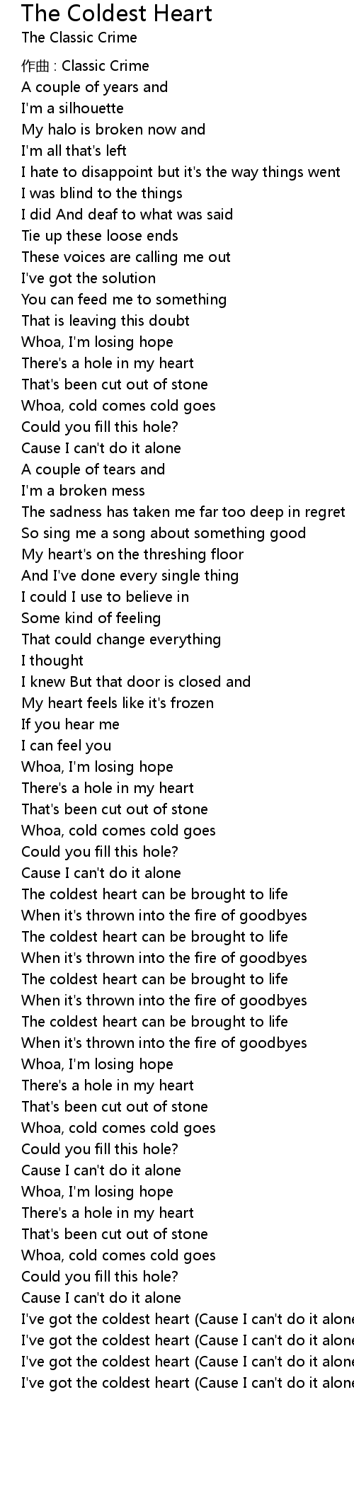 | I' ve got the coldest heart Cause I can' t do it alone |