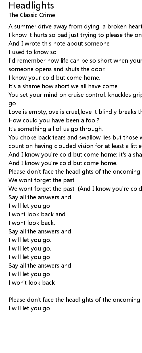 You choke back tears and swallow lies but those wiper blades won't fix you eyes, count on having clouded vision for at least a little while. |