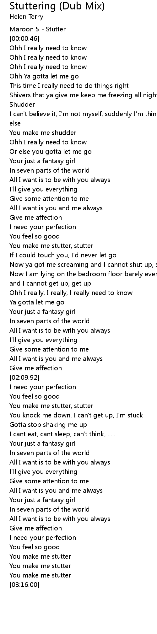 [00:00.00] Maroon 5 - Stutter