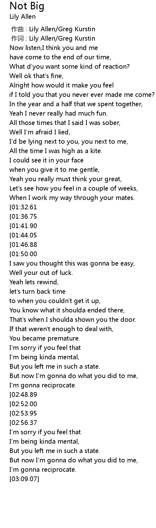 | [00:01.00] | 作词 : Lily Allen/Greg Kurstin |