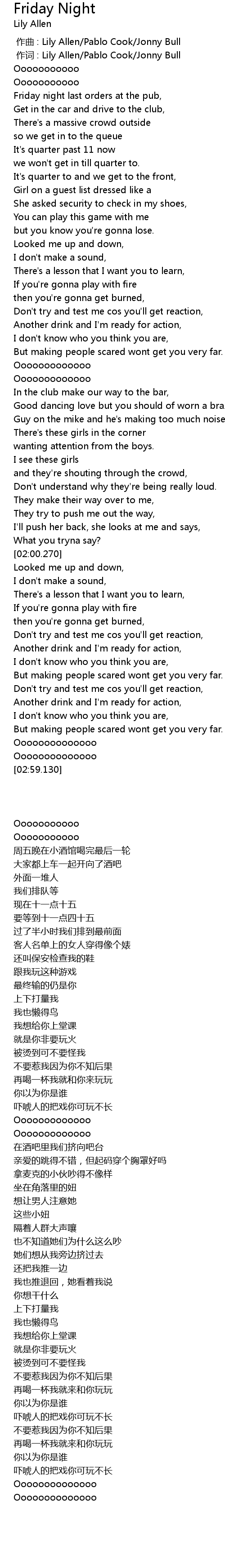 | [00:01.00] | 作词 : Lily Allen/Pablo Cook/Jonny Bull |