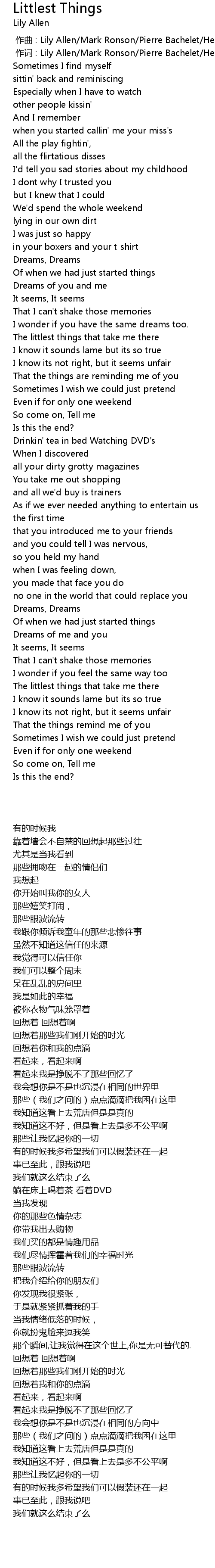 | 歌曲 | Littlest Things |