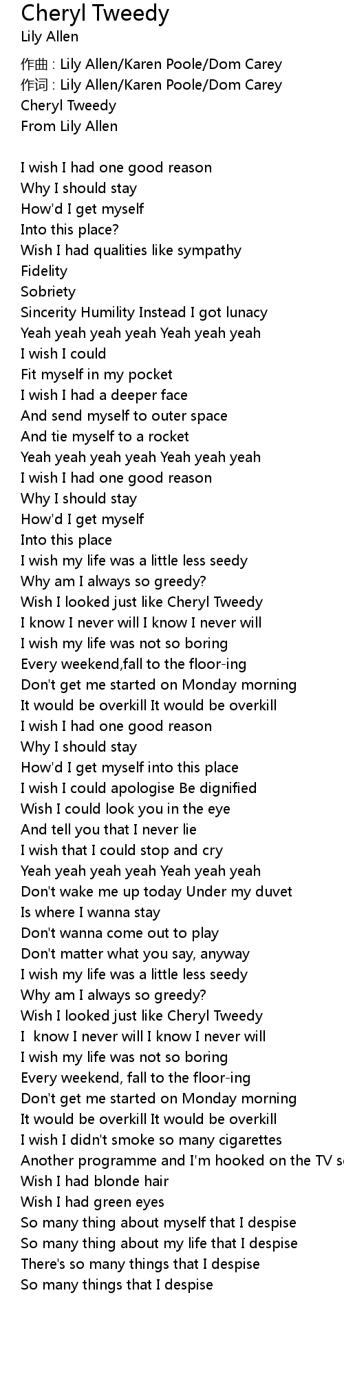 | 作词 : Lily Allen/Karen Poole/Dom Carey | |