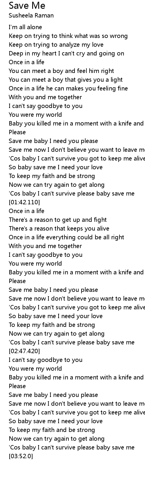 | [03:46.460] | 'Cos baby I can't survive please baby save me |