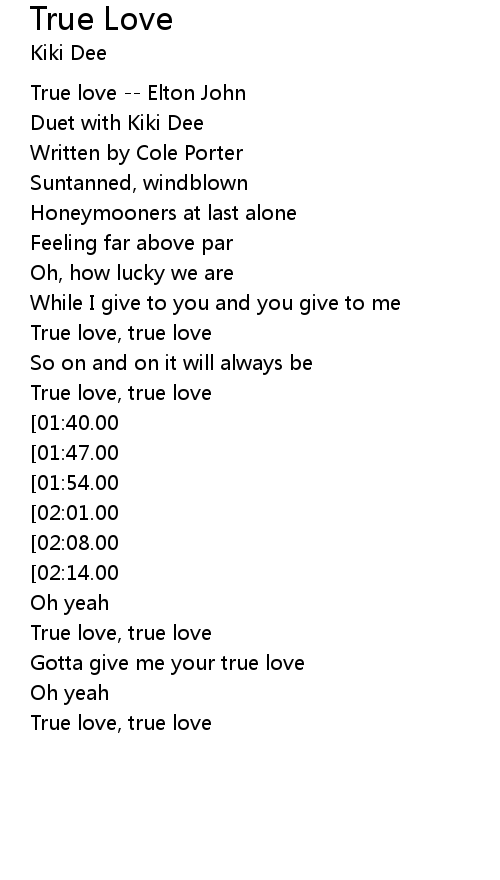 [00:02.00] True love -- Elton John