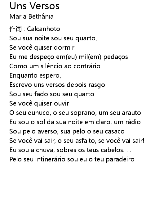 | Pelo seu intinera rio sou eu o teu paradeiro |