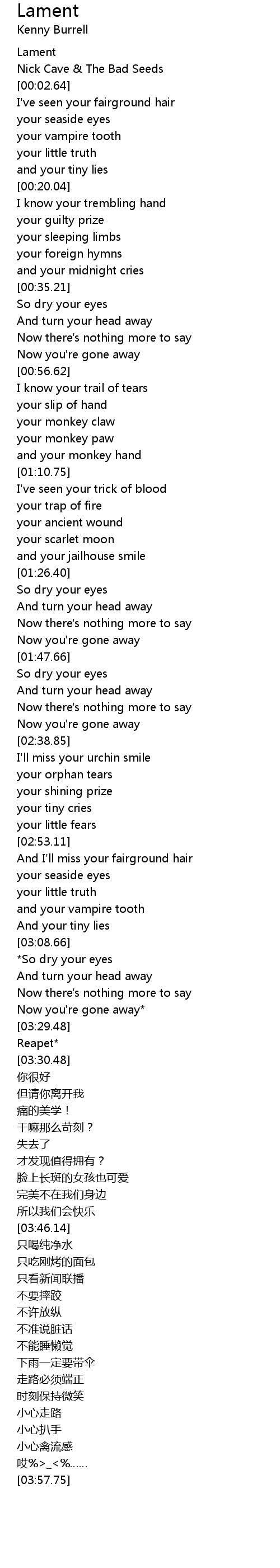| [00:01.89] | Nick Cave The Bad Seeds |