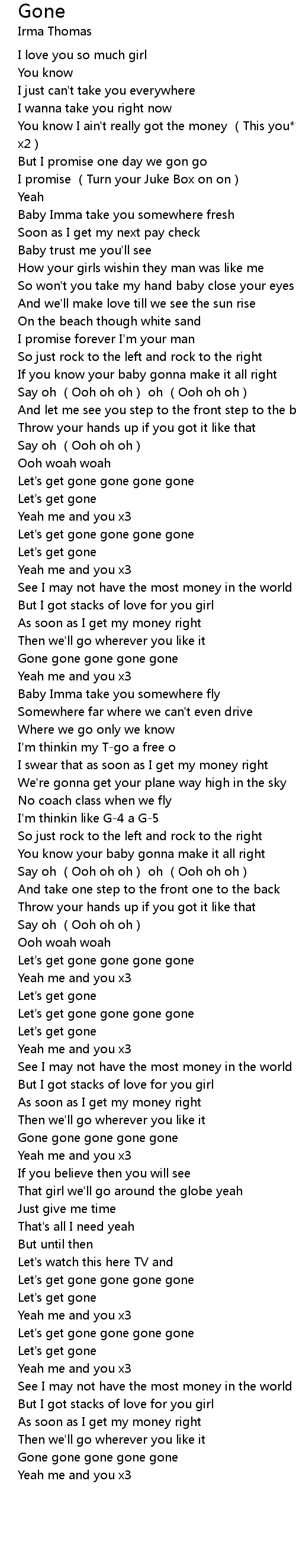 | [00:49.98] | Let' s get gone gone gone gone |