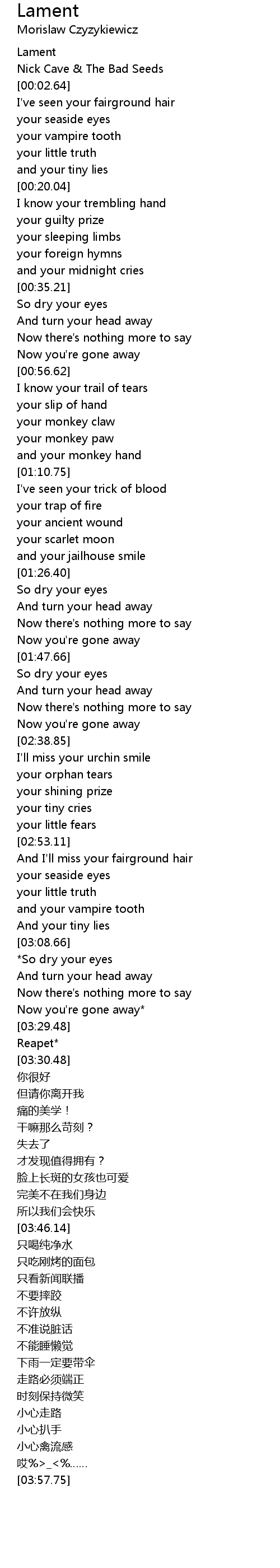 | [00:01.89] | Nick Cave & The Bad Seeds |