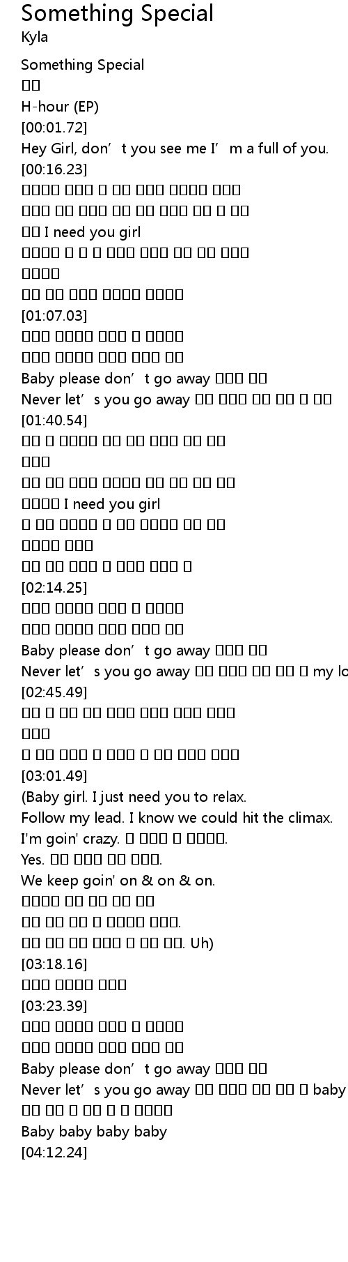 | [03:44.10] | Baby please don’t go away 가지고 싶어 |