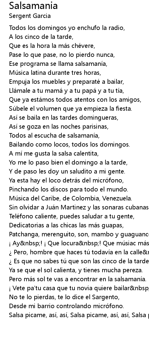 | Salsa picame, así, así, Salsa picame, así, así, Salsa picame, así, así.... |