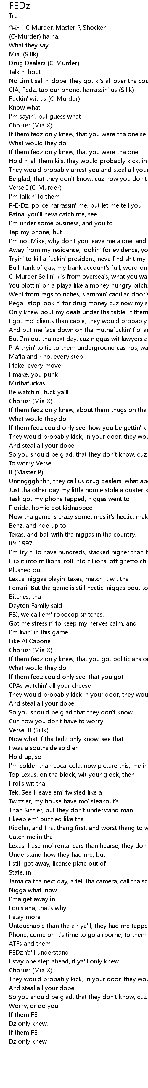 | Only knew bout my deals under tha table, if them fedz could only see | |