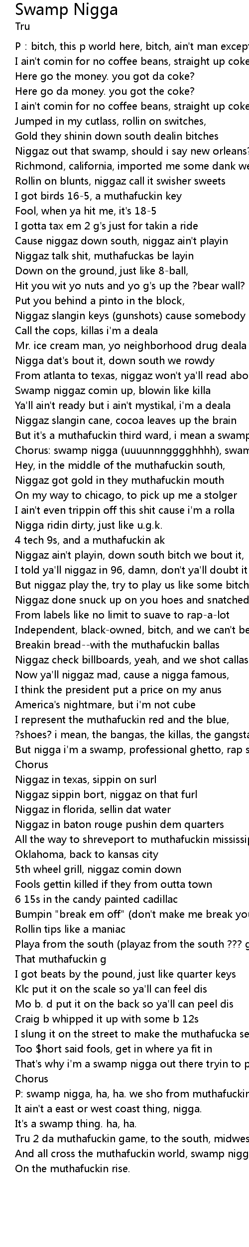 | But nigga i' m a swamp, professional ghetto, rap slanga | |