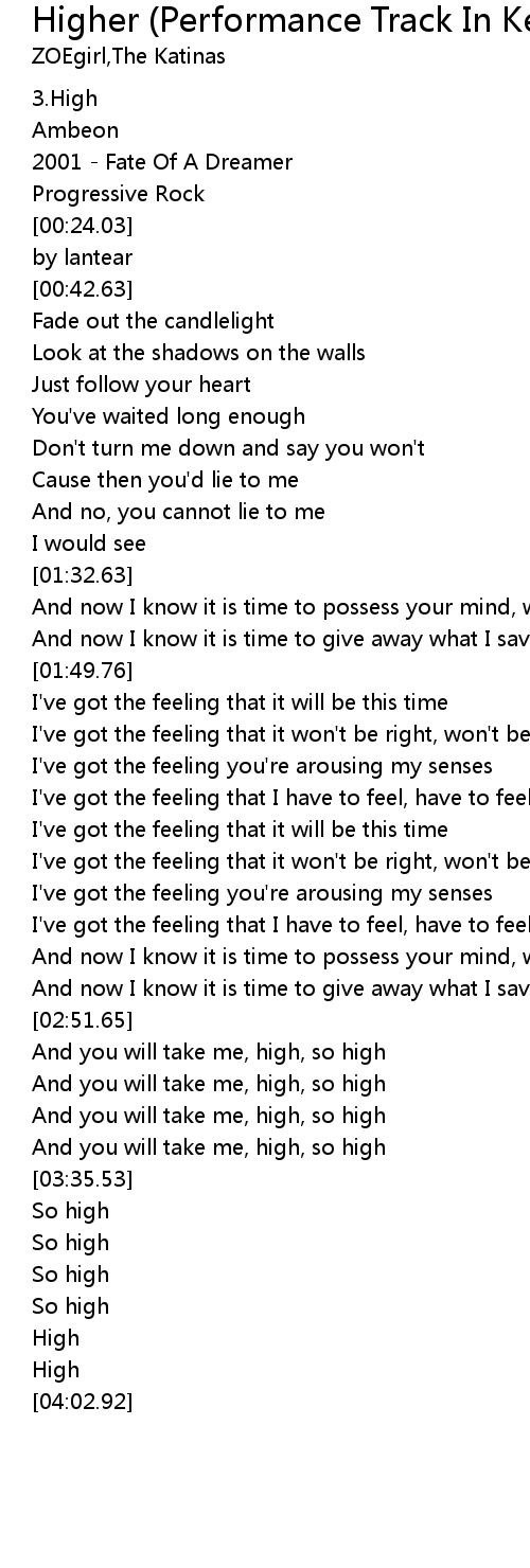Higher (Performance Track In Key Of D With Background Vocals) 歌词