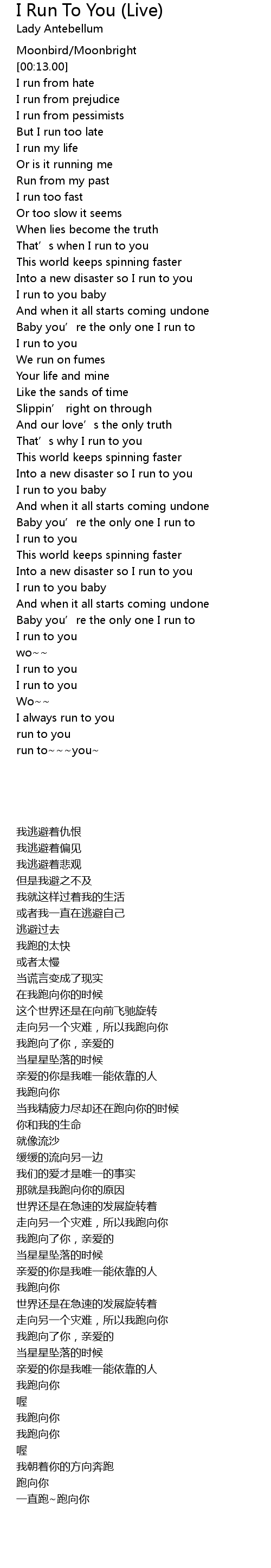 | [01:13.71] | 走向另一个灾难,所以我跑向你 |