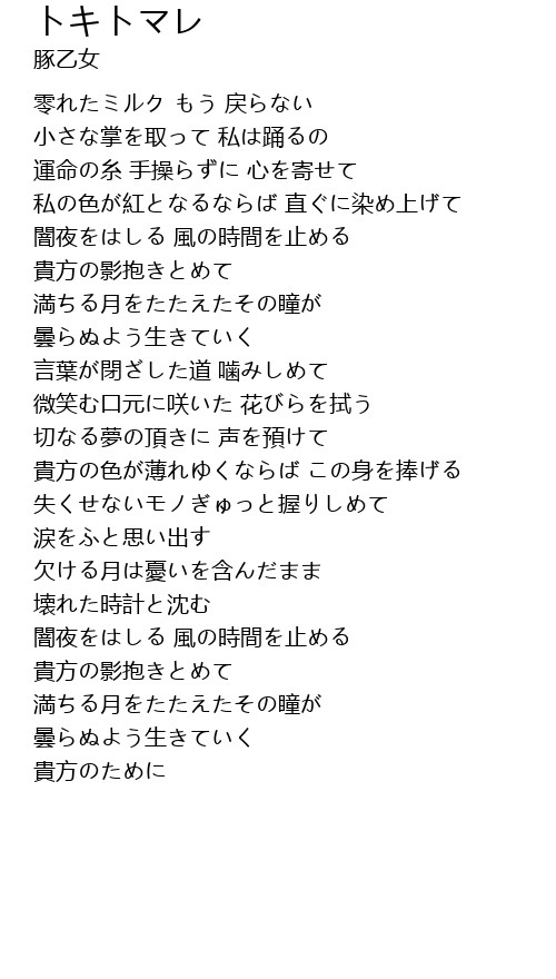 | 歌曲 | トキトマレ |