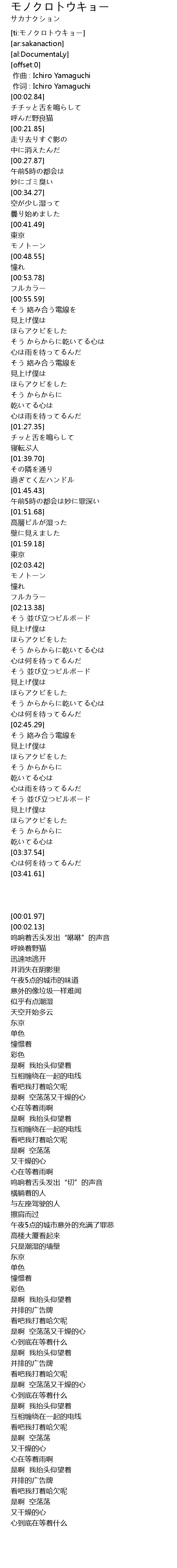 | [02:04.99] | モノトーン |