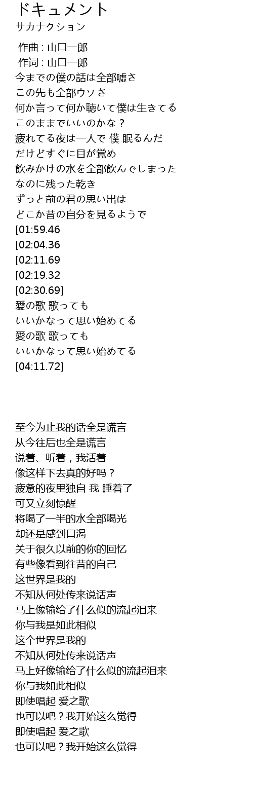 | [00:01.00] | 作词 : 山口一郎 |