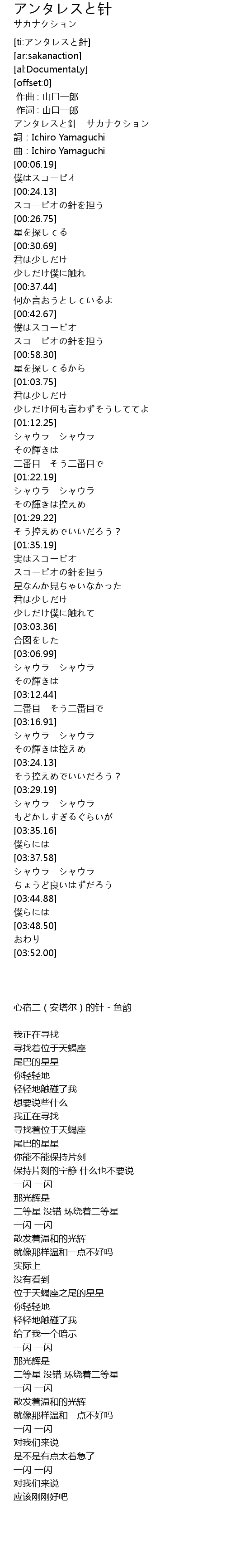 | [00:01.53] | アンタレスと針 - サカナクション |