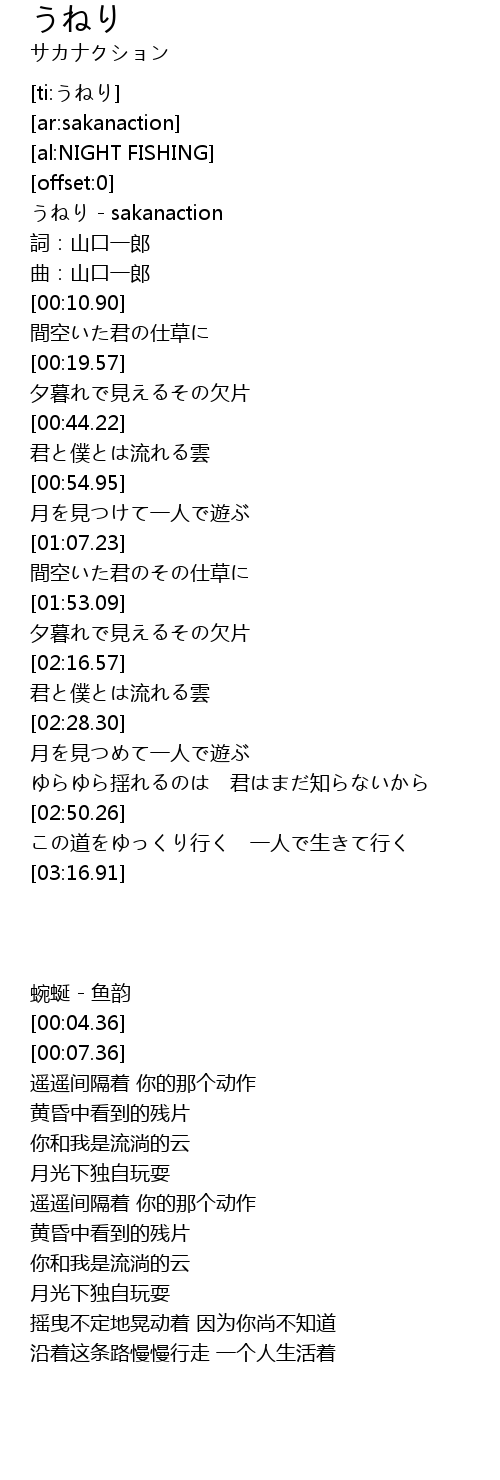 | [00:01.42] | 蜿蜒 - 鱼韵 |