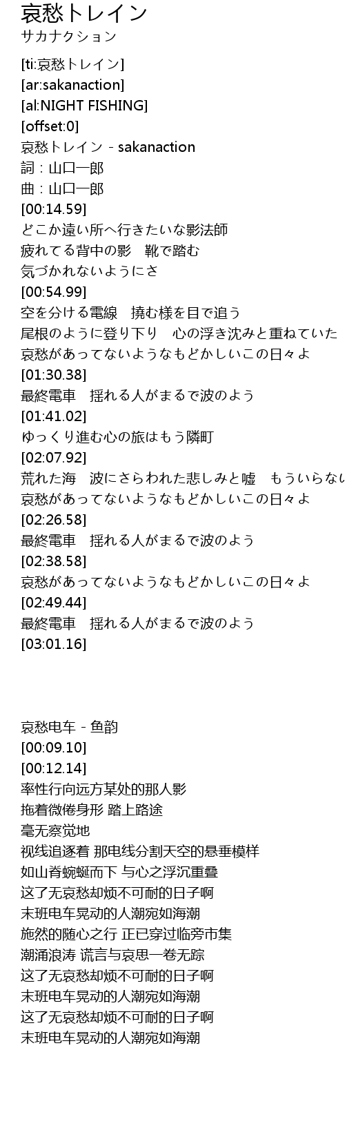 | [00:00.66] | 哀愁トレイン - sakanaction |