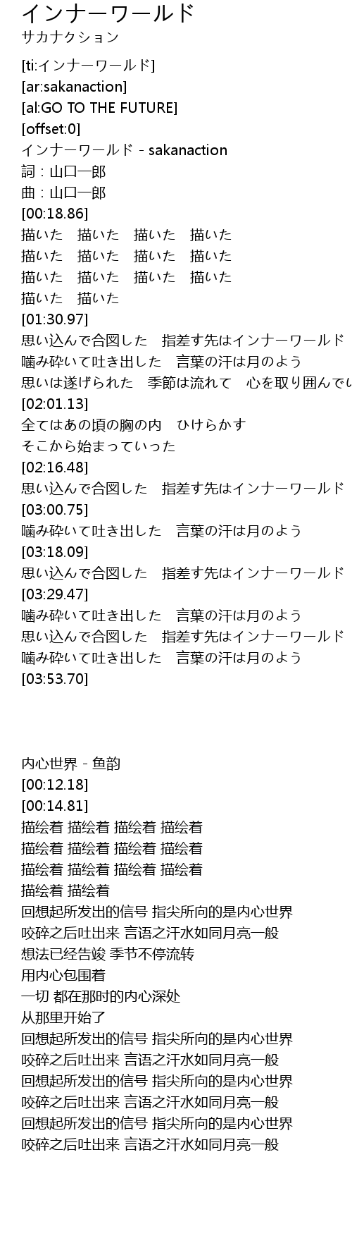 | [00:00.70] | インナーワールド - sakanaction |