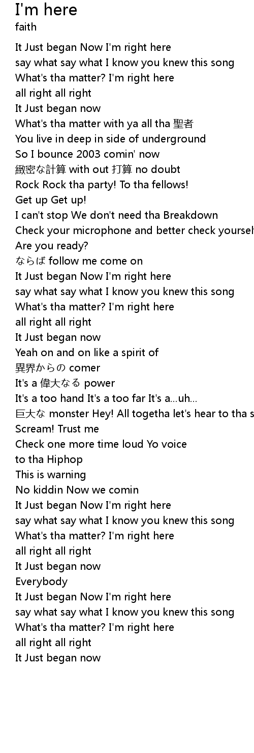 | It Just began Now I'm right here | |