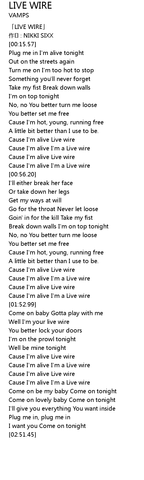 | [00:43.02] | Cause I'm alive I'm a Live wire |