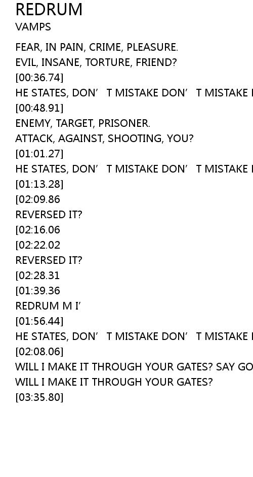 | [01:56.99] | HE STATES, DON’T MISTAKE DON’T MISTAKE DON’T MISTAKE |