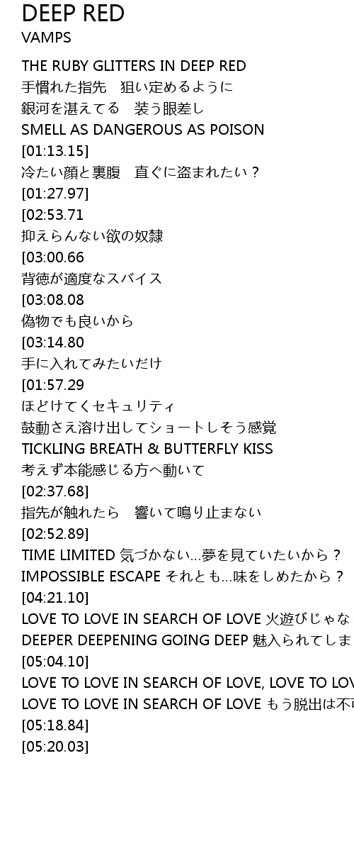 | [04:57.03] | DEEPER DEEPENING GOING DEEP mei ru DEEP RED |