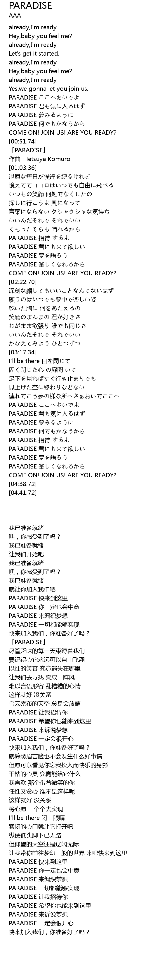 | [04:09.94] | PARADISE 希望你也能来到这里 |